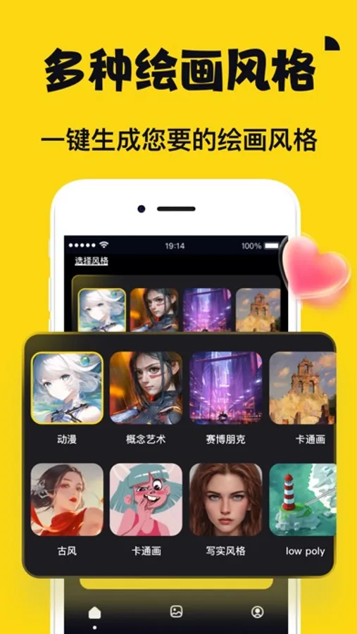 丰富的图片风格,您想要的都在这里:古风、二次元、写实风格、浮世绘、low poly 、未来主义、像素风格、概念艺术、赛博朋克、洛丽塔风格、巴洛克风格、