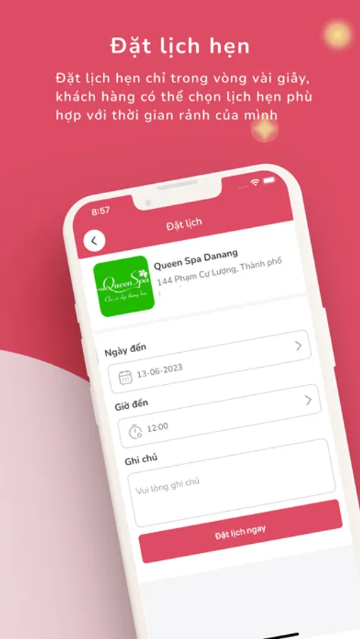 - Đặt và được xác nhận lịch hẹn nhanh chóng, tiện lợi.