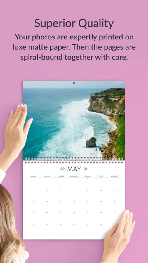 We’re obsessed with quality, which means your calendar is guaranteed to last. Month after month, you’ll love looking at favorite people and special places as you make plans for all the fun adventures ahead. Every photo is expertly printed with care on luxe matte paper, with every page securely spiral bound together for easy wall display.
