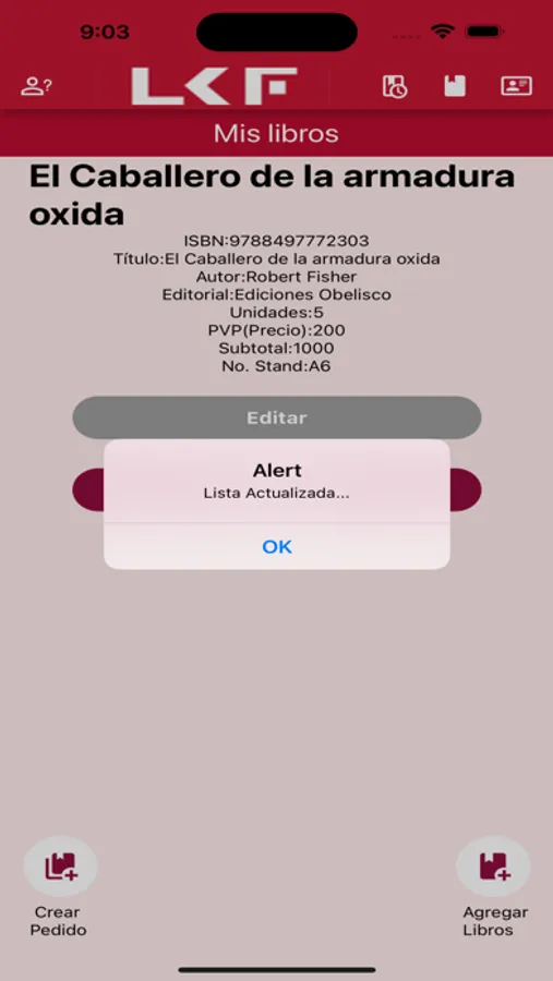 Aplicación para realizar registros de libros y realizar pedidos de libros.(Exclusivo Librería Carlos Fuentes).