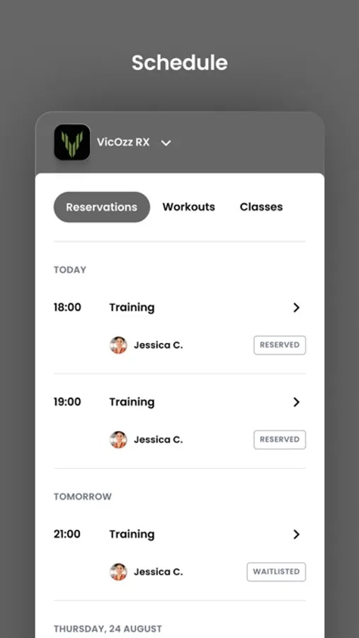 For members of VicOzz RX to reserve their place in a class, sign up for gym events, and general account management like updating headshots and credit card on file.