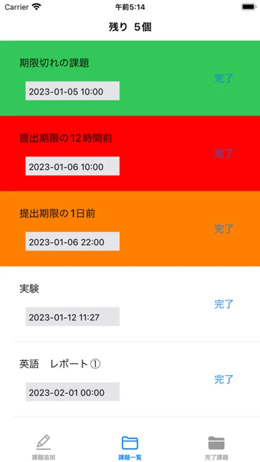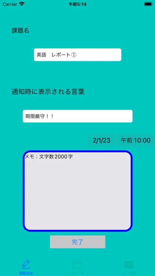 期限などの必要事項を入力すれば期限の12時間前と24時間前に通知をして期限が迫ってるのを伝えてくれます。