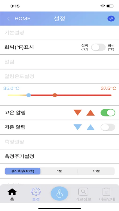 휴대폰을 통한 이상온도 알람기능 (고온/저온)