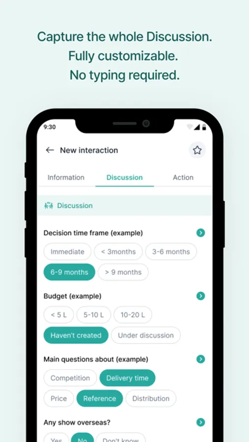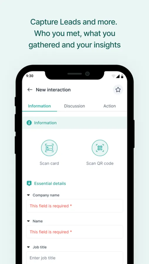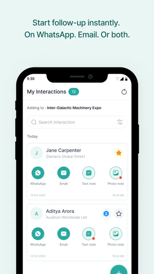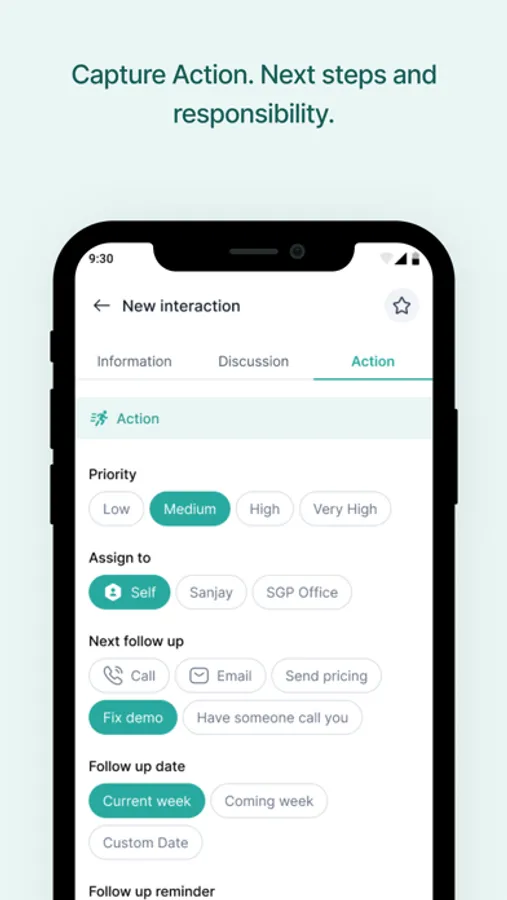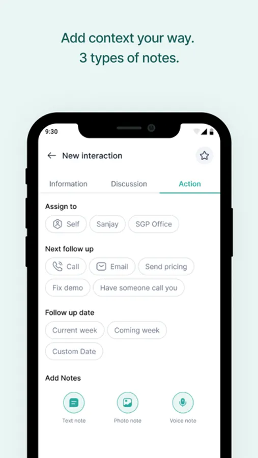 Tap a few buttons to capture all key data - who you met, what you learnt about them and what to do next