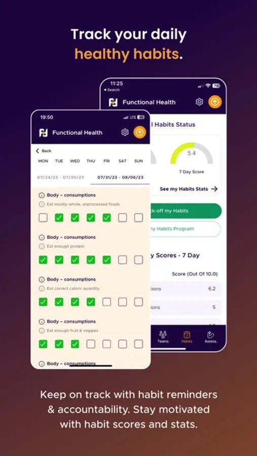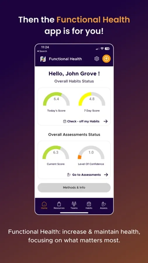The Functional Health app was designed to help you live long and well. The habit building & tracking wellness app aims to assist you in increasing and maintaining your functional health, focusing on what really matters – the most influential and controllable daily choices and actions.