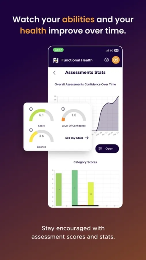 Through the assessments and their scores and stats, you will stay encouraged and motivated, and know, with confidence, that you are headed in the right direction, by watching your abilities and health improve over time.