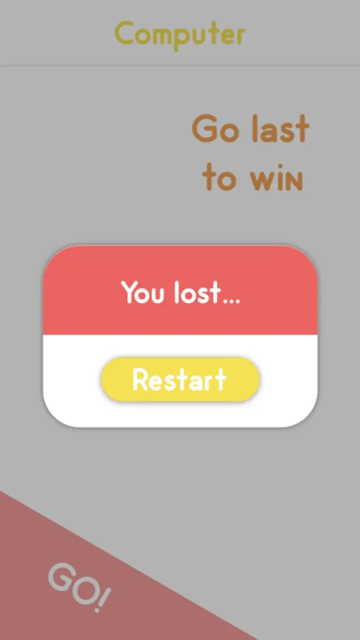LAST TO WIN is a strategy game where 2 players take turns and try to win.