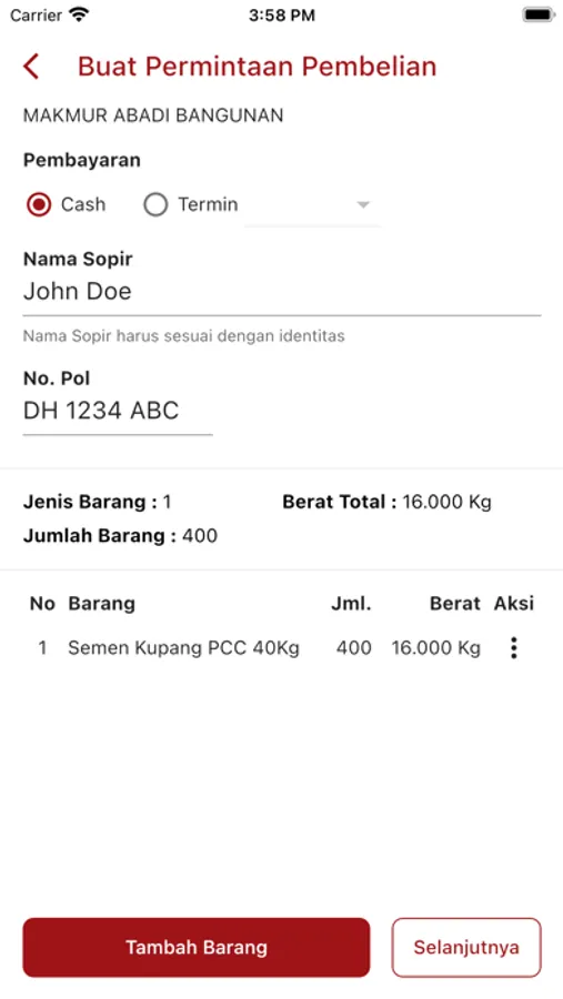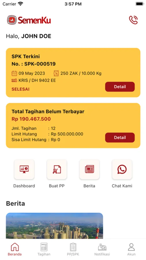 SemenKu Apps is perfect for users who need large amounts of sacks of cement and want to order in a practical and easily accessible way via the customer's smartphone. This application can help save time and effort in placing orders and monitor order status in real-time.