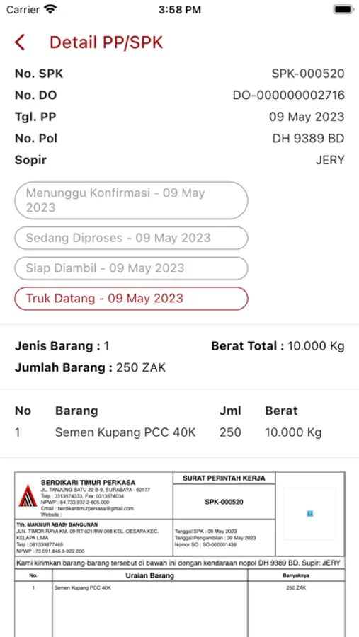 "SemenKu Apps" is a mobile application owned by PT. Berdikari Timur Perkasa which allows users to order sacks of Semen Kupang for the Kupang area and its surroundings through easy and practical Purchase Order (PO) orders. In addition, this application also provides information related to the process of picking up goods, such as order status and collection time