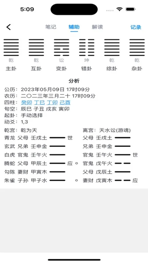 支持时间,日时,随机,指定,物数,报数,金钱,蓍草等多种起卦方式