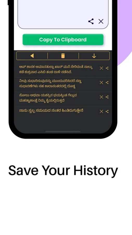 You can save your Kannada text inside application it self. You can use your text for later use too.