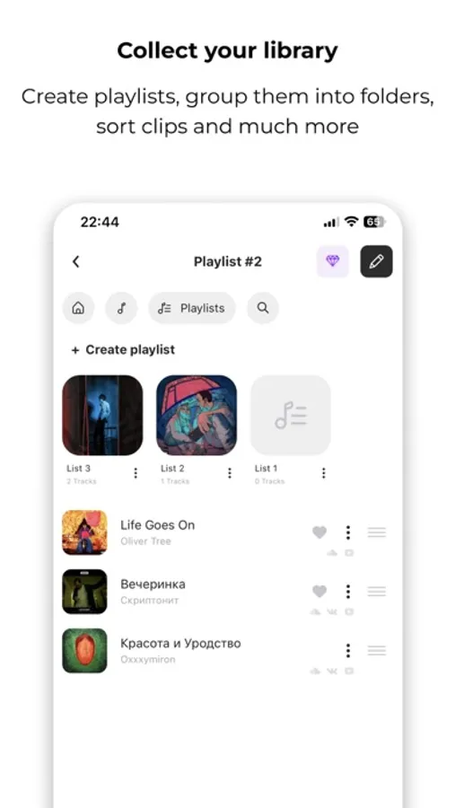 Collect your library. Create playlists, group them into folders, sort clips in the right order
