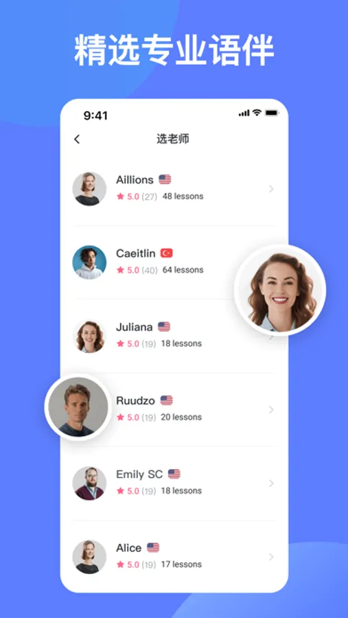 我们的聘请专业的英语语伴,他们将在线为您提供实时的英语对话,帮助您的英语表达更接近母语者的水平。
