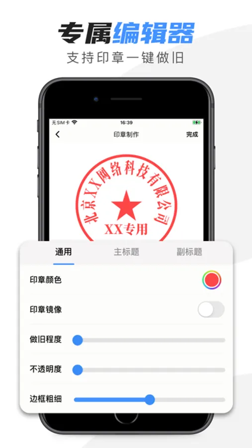 支持字体大小编辑、字体间距处理,边框粗细调节,也有做旧功能,让印章更接近真实的样子。同时可以导入文件进行盖章并返回PDF文件,印章尺寸可根据文件大小进行对应调节。