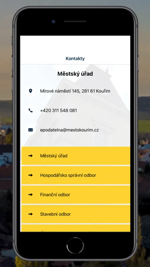 Aplikace města Kouřim obsahuje důležité informace o městě. Najdete v ní informace o veškerém dění ve městě, potřebné kontakty, aktuality a mnoho dalšího. V aplikaci naleznete nezbytné odkazy, úřední hodiny městského úřadu, ale i kam se vydat za kulturou a sportem. Aplikace nabízí kontaktní formulář, rychlé psaní e-mailu či snadné volání. V sekci pro turisty objevíte tipy na výlety a kam se vydat za památkami.