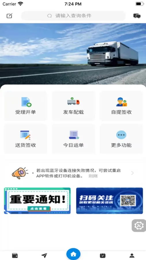 兼顾习惯,配置个人工作台,列表展示,运费构成,各环节选项; 收款付款一键全操作,费用合并组合结算,任意关键字可随意追踪查询; 营运分析,运营时效,成本分析,日常统计,账务汇总; 从收货到签收,微信扫一扫,查询全程操作轨迹信息,全程可视。