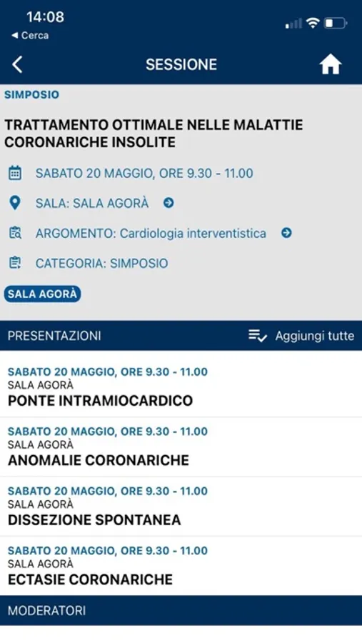 La funzionalità My Congress permette di salvare l’orario e la sala in cui si terranno le Presentazioni e i FAD di proprio interesse.