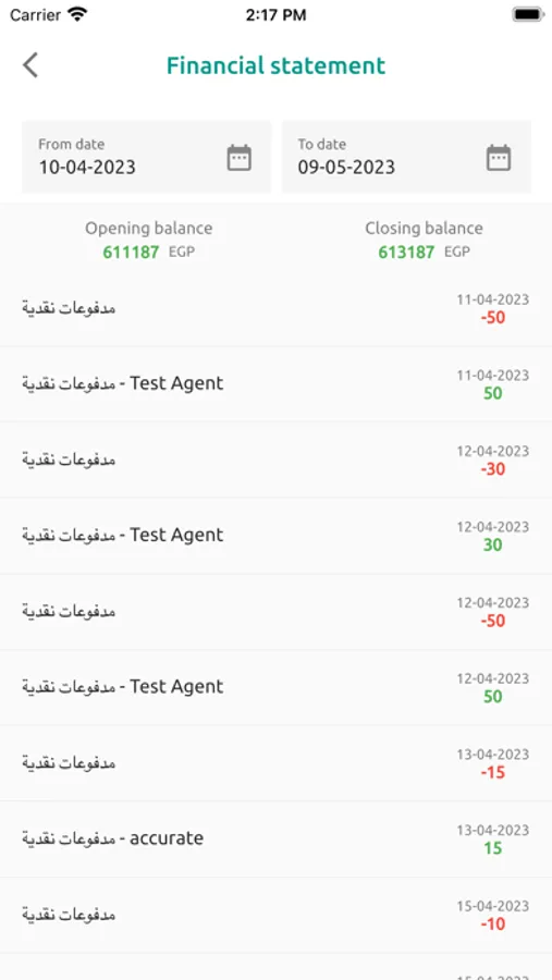 • كشف حساب العميل به تفاصيل المعاملات المالية