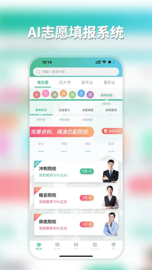 根据考试院的历年升学数据,联合多位名师研发的智能推荐算法,为您精准匹配录取率高的院校。