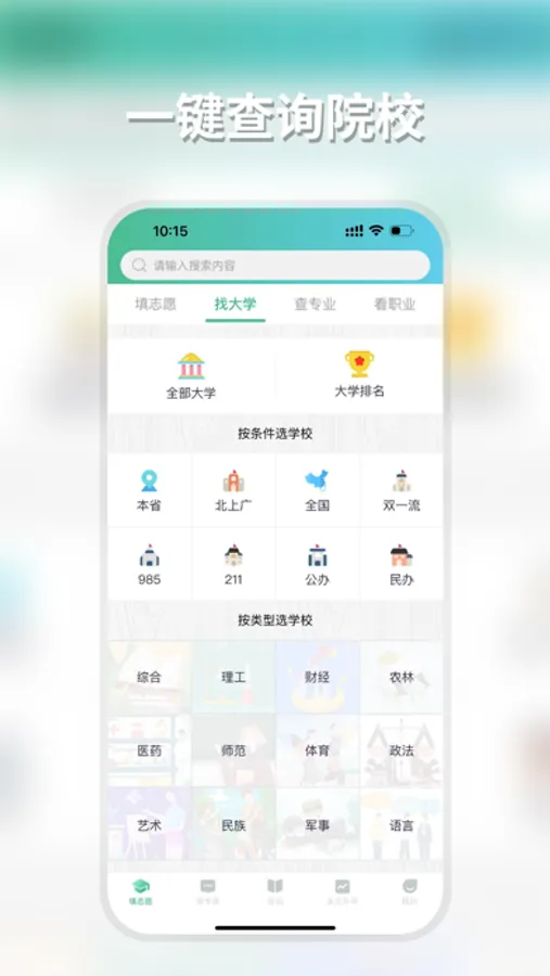 本系统收录全国3000多所的院校,1600多个专业的详细信息,为高考生提供院校、专业数据大全,让你轻松掌握海量数据。