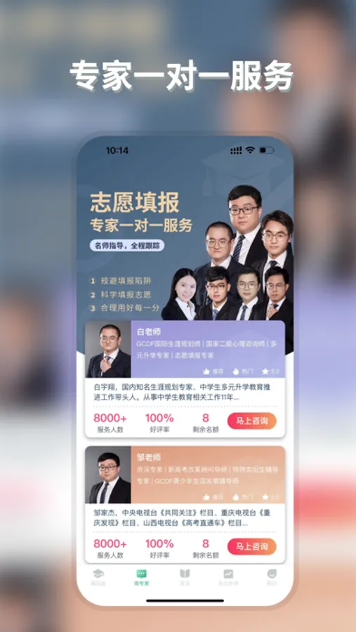志愿填报:多位名师在线一对一指导高考生做出更加合理、有效的志愿填报方案。