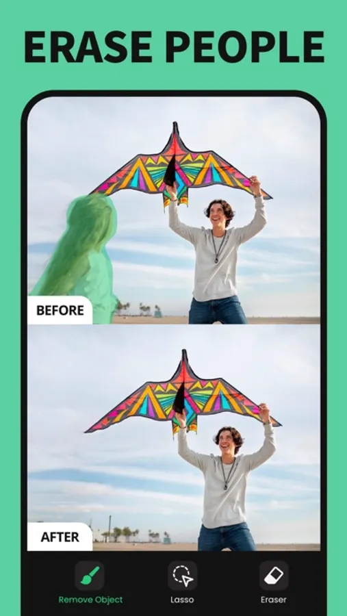 Tired of dealing with photobombers or messy backgrounds? Allow us to be your trusted photo cleaner at hand. Simply brush over the unwanted objects or try the hands-free Auto mode for automatic detection & removal. Watch as all those undesired elements vanish in seconds.