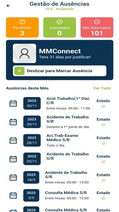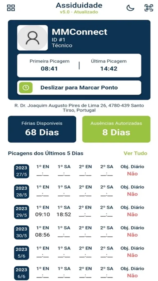 A MMConnect desenvolveu uma aplicação mobile, para registar a sua assiduidade no trabalho e pode também consultar a sua assiduidade.