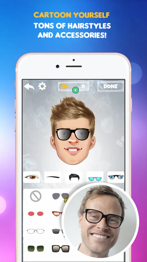 The cute anime character creator is a fun app where you can enjoy making characters for hours, changing their hairstyles, face, and accessories! After you've made your cartoon photo character, share a picture of a cute cartoon version of yourself on your profile and amaze everyone! Or, use the pics from this cartoon selfie creator as personalized photo emojis and stickers for texting with friends!