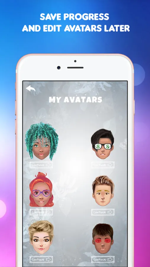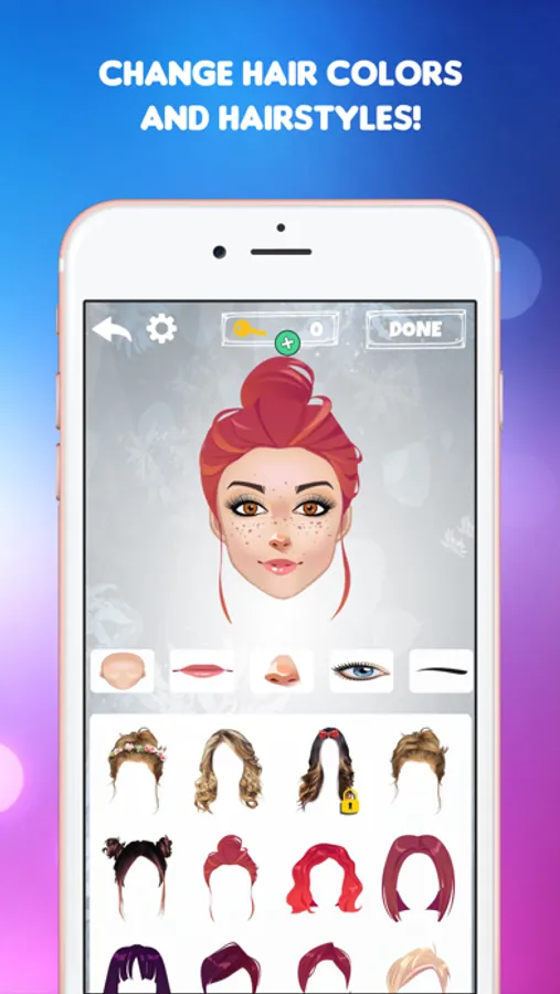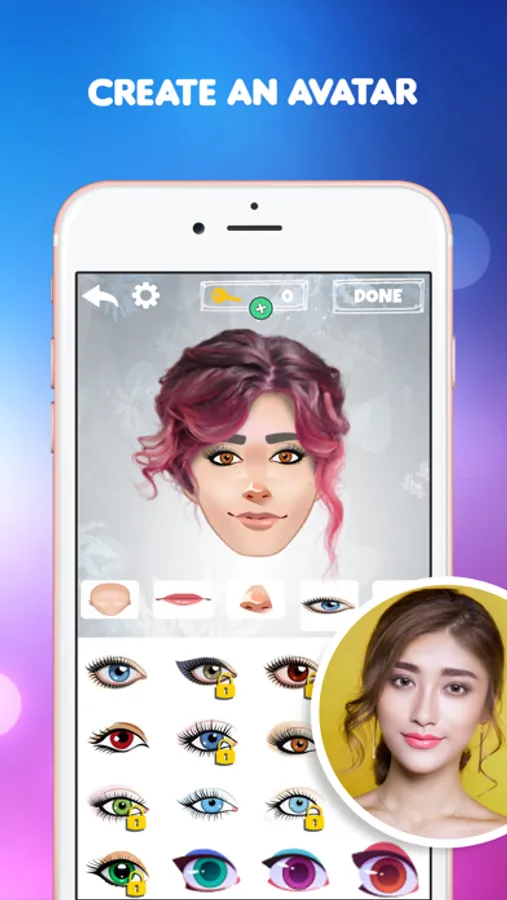 Pick colors and styles to change faces and edit avatars and anime characters.