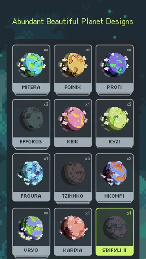 We offer hundreds of unique planet designs, satisfying your curiosity and desire to collect with constant surprises. See a planet's full appearance only after evolving it through focused efforts. Earn Stardust coins by focusing to unlock new planet seeds, motivating continuous concentration.