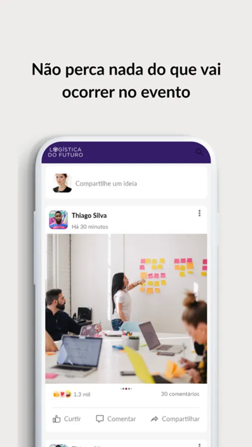 Com o aplicativo Logística do Futuro, você tem acesso a uma rede social exclusiva, pode fazer novos contatos, enviar perguntas aos palestrantes, trocar mensagens com outros participantes, enfim, interagir com a comunidade. Além disso, você pode consultar a programação, avaliar conteúdos, dar feedback e responder quizzes. Utilize o APP e aproveite ao máximo os recursos.