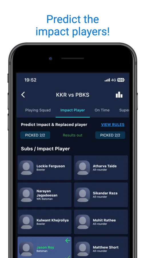 Impact11 - Fantasy cricket app offers users the ability to predict the outcomes of various events during a live cricket match. Users can make predictions on the toss winner, playing squad, substitutes, match winner, impact players, super over and live predictions while the game is in progress. By making accurate predictions, users can compete with other app users to top the leaderboard and showcase their prediction skills. The app is designed to provide a more interactive and engaging experience for cricket fans who want to stay connected with the game in real-time. The app is free to play, with no monetary transactions involved, making it accessible to a wide range of users.