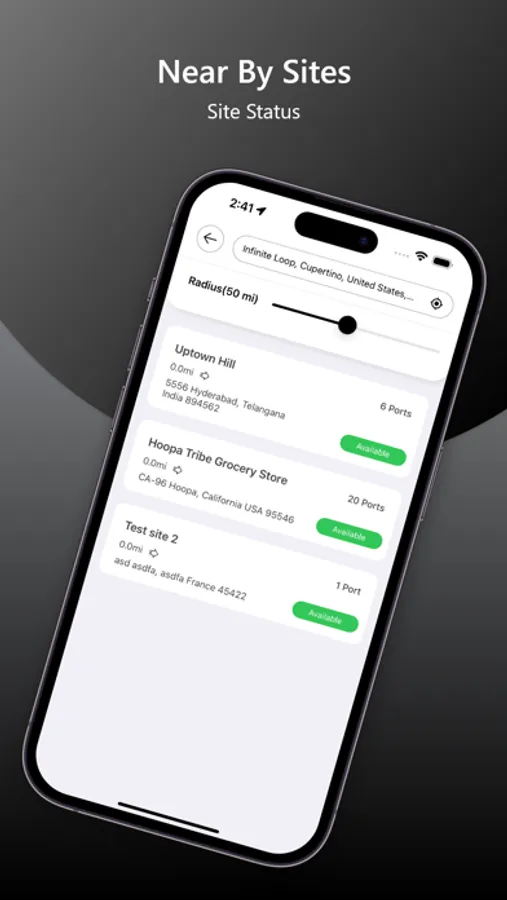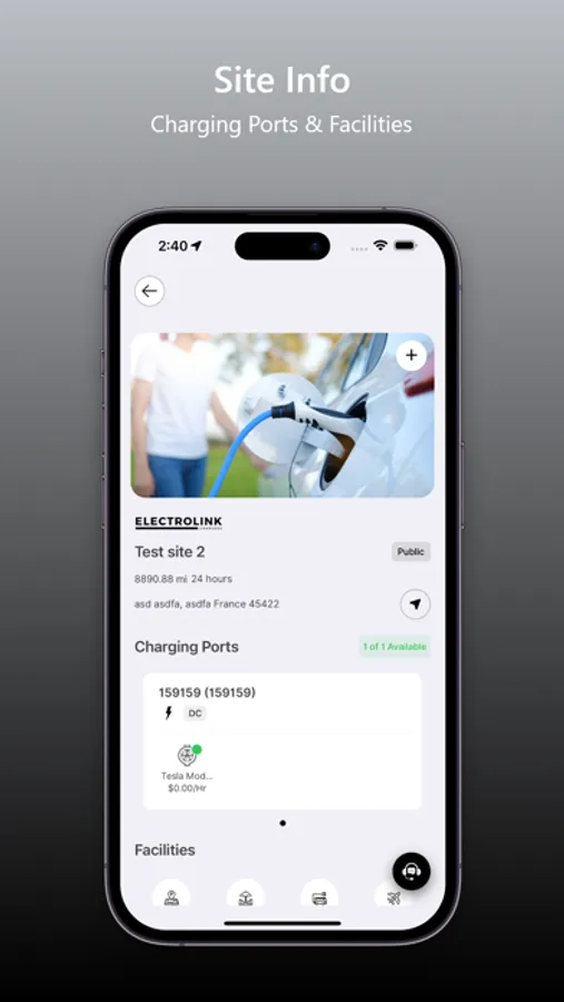 - Details Site Info Screen: You can view detailed information about charging stations, including location, Availability, Amenities, Pricing, Opening times and more.
