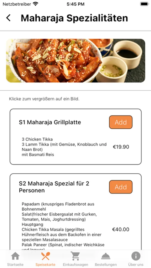 Geniessen Sie unsere einzigartigen Spezialitäten mit Chicken, Ente, Lamm, Fisch, Tandoori und Vegetarisch.