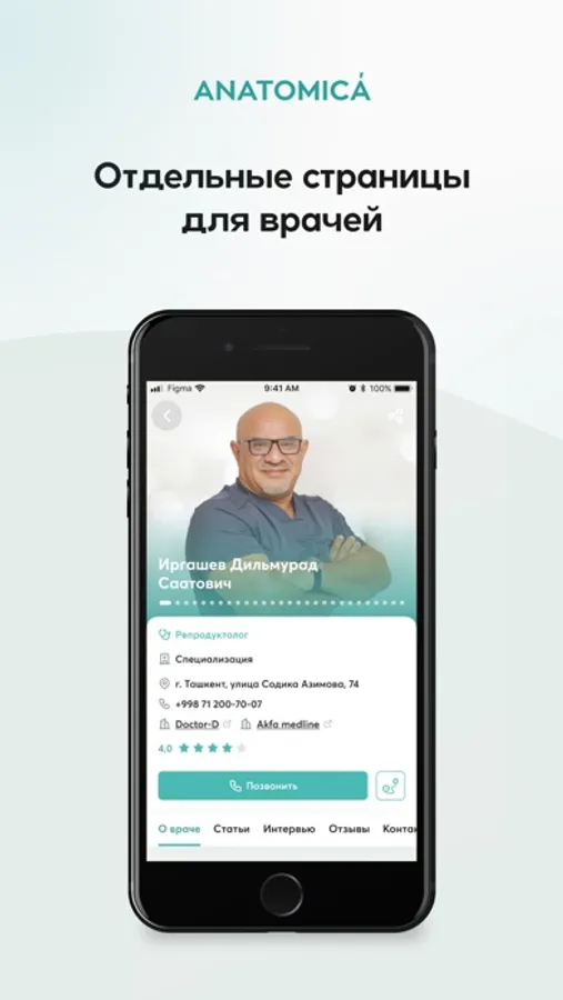 В приложении вы найдете подробную информацию о врачах, отзывы и рейтинг. Удобный поиск нужного специалиста на карте, умные фильтры подбора врача: по специальности, удаленности и рейтингу. Теперь ANATOMICÁ стало более полезной и практичной платформой.