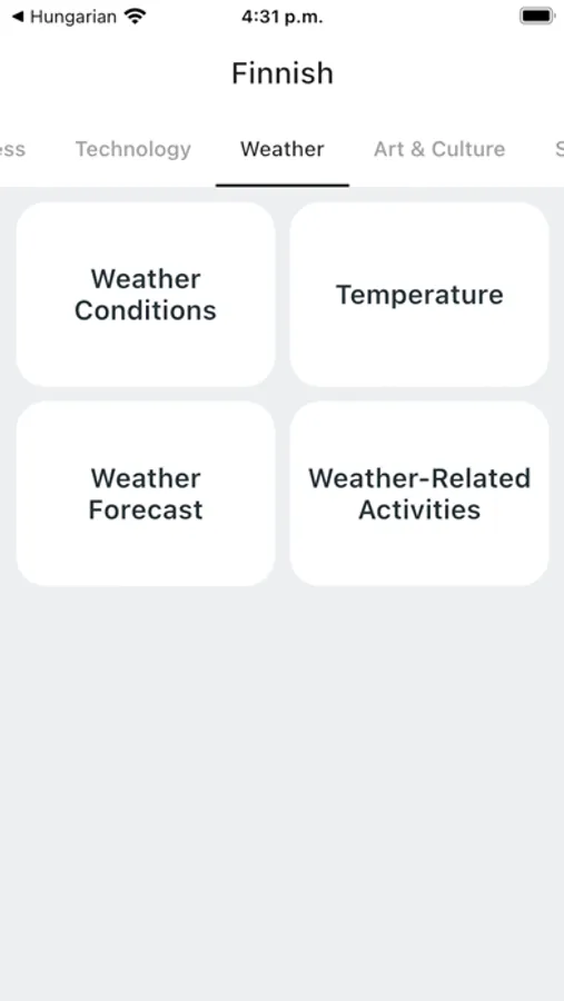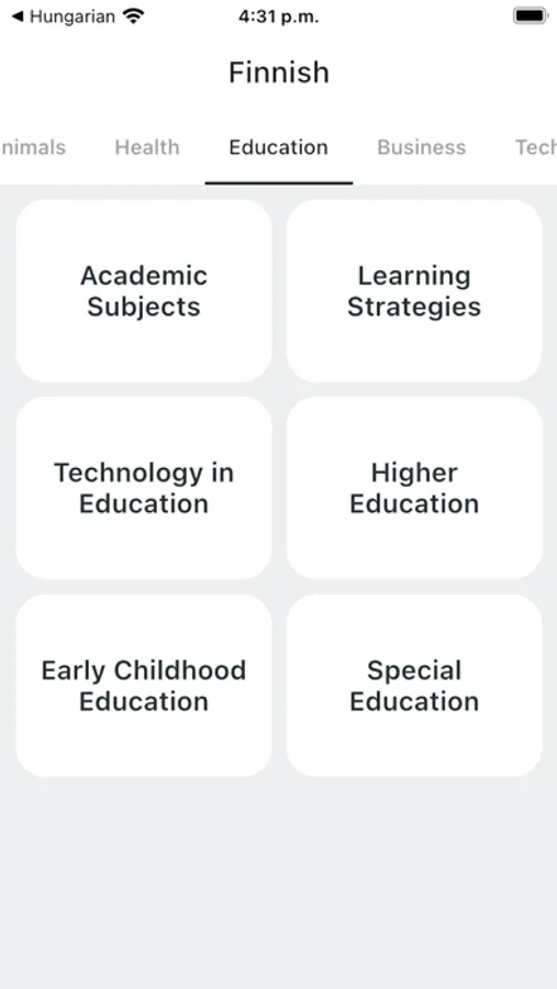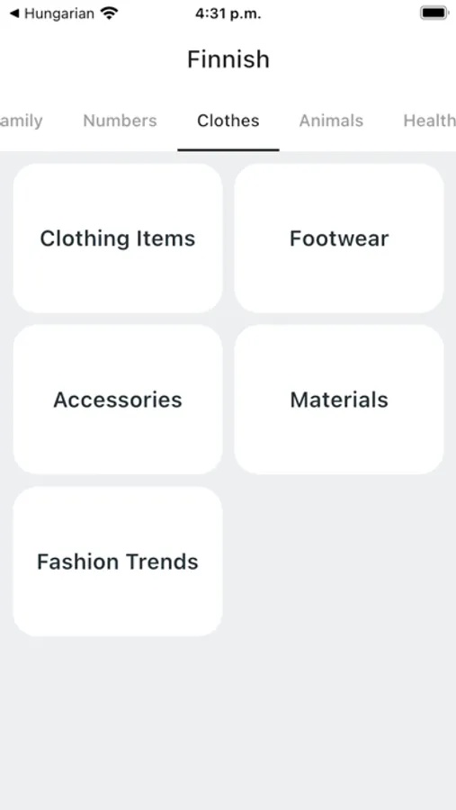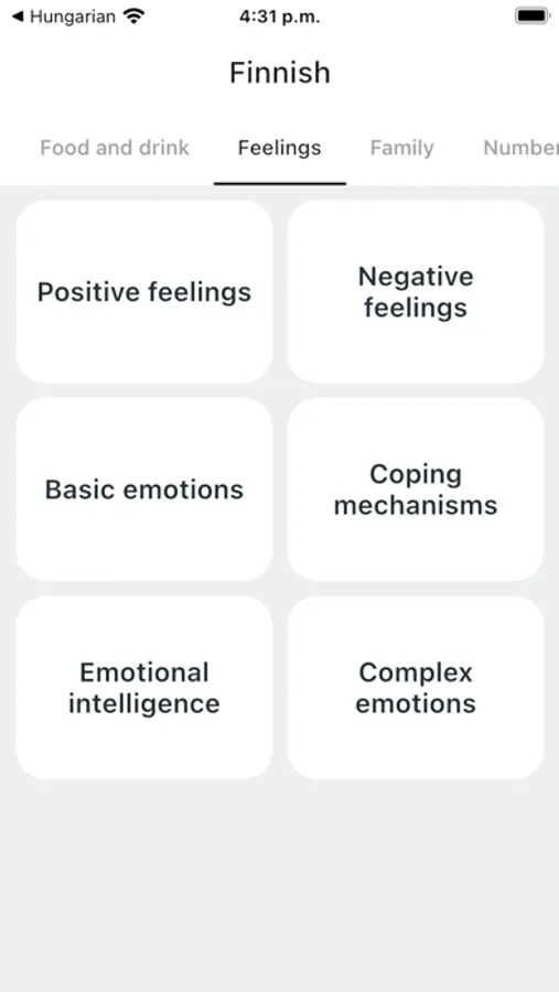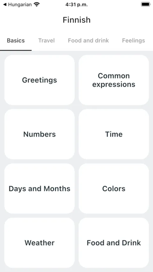 Unlock this beautiful language with Everlang Finnish, the ultimate flashcard app for learning Finnish through English translations! With a diverse range of categories, Everlang is your one-stop solution to master the language. Start learning Finnish efficiently, whether it's for travel, business, or personal growth.