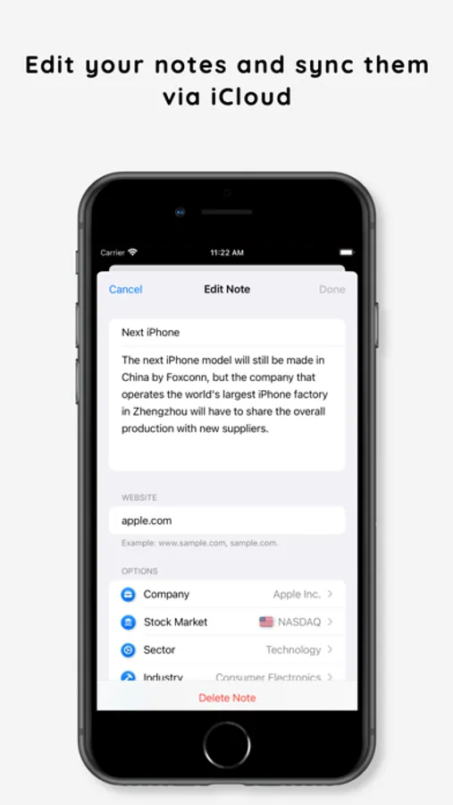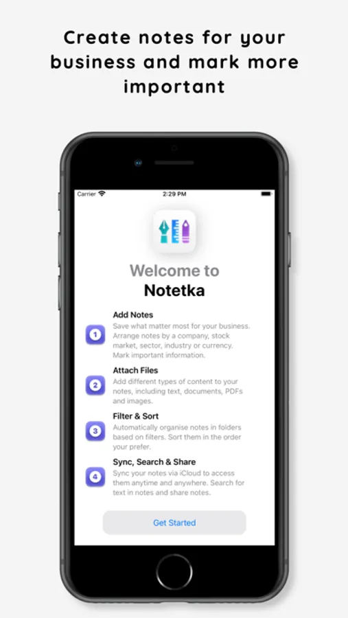 Notetka provides you with a simple and easy to use functionality which organize your everyday business information. You can enjoy a full circle of managing your notes for your business with seamless cloud synchronization across all your devices. Sync your notes, documents and other files to iCloud storage and access them from any device, anywhere. Share notes with your friends, co-workers, and business partners.