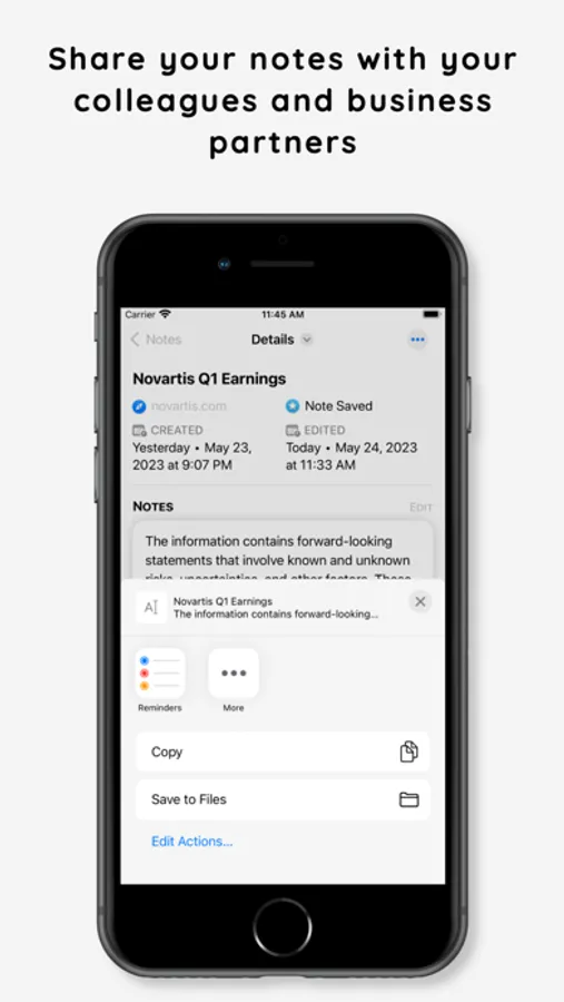 Sync your notes via iCloud to access them anytime and anywhere across all your devices. Search for text in notes and share notes. Find notes according to the info you need.