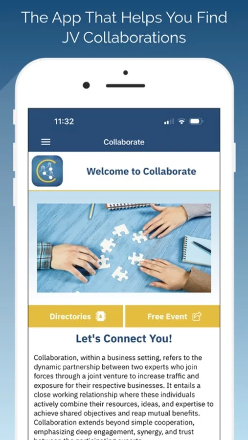 We then provide resources, events and tools to help you find JV partners and then connect with them through the app, know what they are looking for, and know whether they are a good fit for your business to strike a collaboration with.