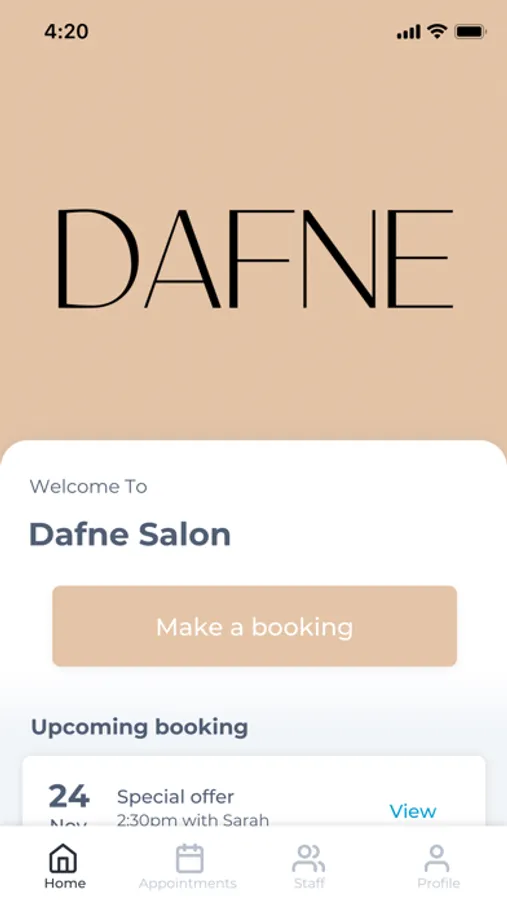 The Dafne Salon app makes booking your appointments and managing your loyalty points even easier. You're just a few taps away from feeling good and looking great!