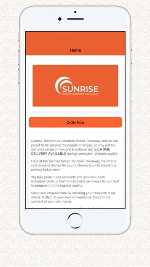 Sunrise Tandoori is a modern Indian Takeaway, and we are proud to be serving the people of Wigan, so why not try our wide range of new and traditional dishes! HOME DELIVERY AVAILABLE during weekdays (charges apply).