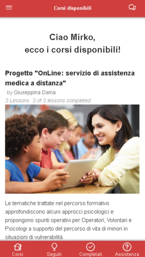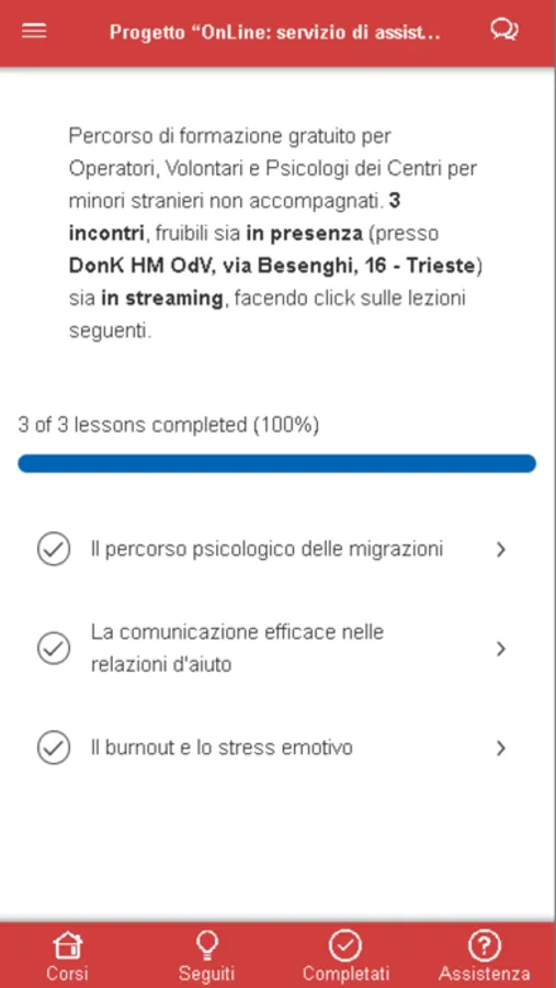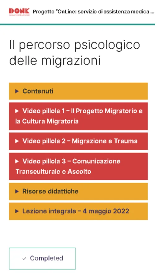 Through this platform, we provide distance learning, in both synchronous and asynchronous modes, for operators, volunteers, medical and paramedical personnel involved in the reception of unaccompanied foreign minors, as well as for centers that provide assistance to vulnerable people.