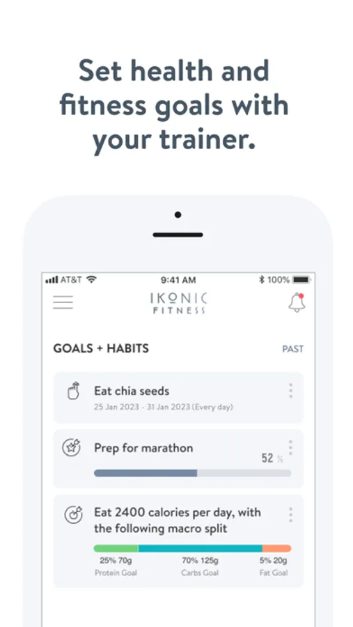 With the Ikonic Fitness App, you will have access to workout programs designed specifically to help you reach your fitness and health goals! You can follow & track your workouts, your nutrition, your lifestyle habits, measurements and results–all with the help of your one on one coach.