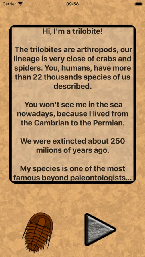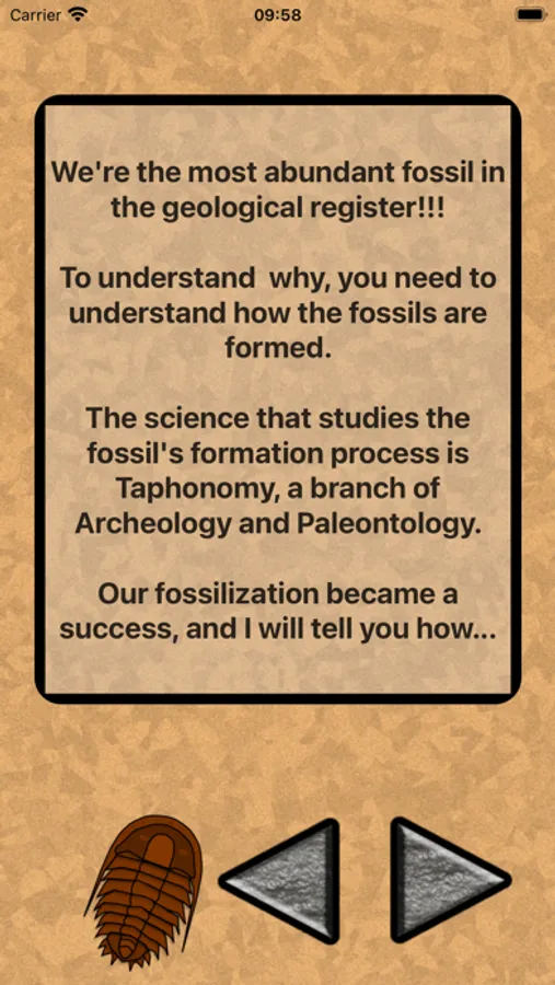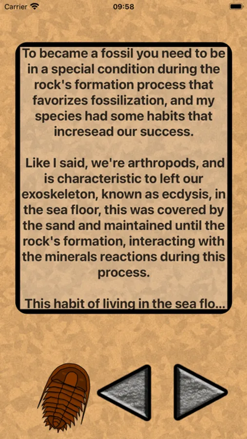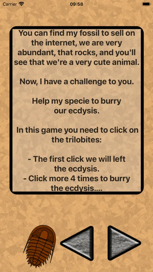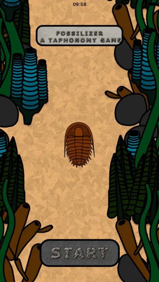 This game introduces with an explanation about the fossilization process, with a trilobite as the main character.