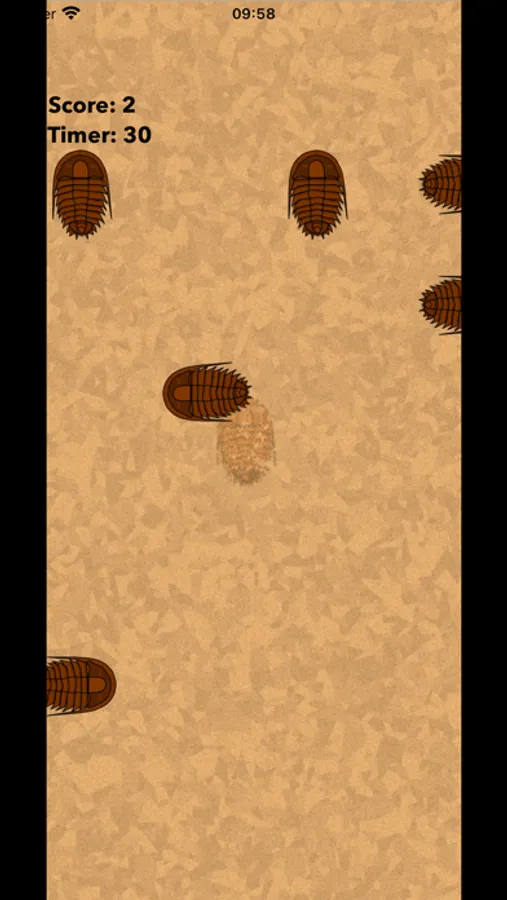 The trilobite instructs the player how to play the game. The player has to click at first on the trilobites that runs on the screen, in this first click the player helps the trilobites do ecdysis and left behind an exuviae, after the player have to burry the exuviae by clicking a few times on that, until it disappear, if the player delay more than 3 seconds the exuviae will rott, and the timer ends the player will see the fossils that was created.