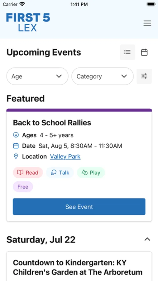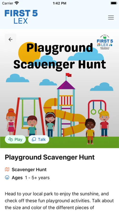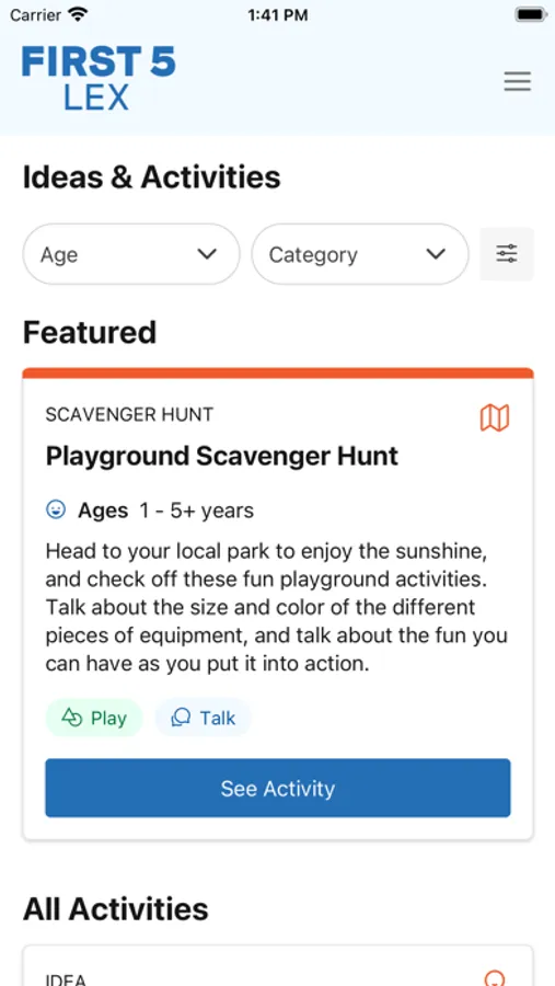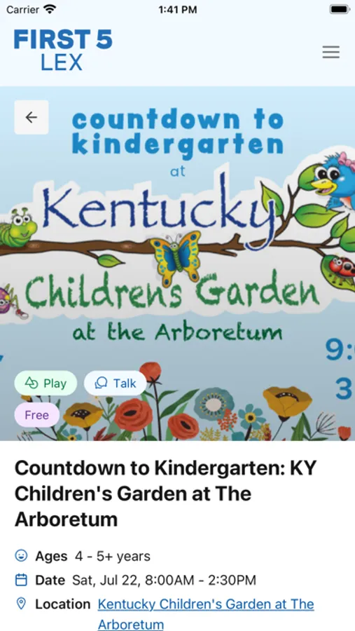 The First 5 Lex app is an early childhood education hub for families and caregivers of children ages 0 to 5. Created by teachers and education experts, it is packed with data-backed resources, fun, age-appropriate activities, and details about local events for families, caregivers, and young children. So you can focus on what’s most important: connecting with your little one.