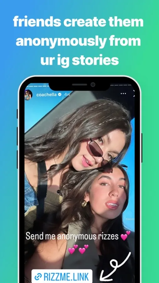 Dive into the captivating realm of communication with RizzMe, the innovative app that enables anonymous messaging on Instagram stories that's all about showing your flair for allure and attraction! All you need to do is share your unique RizzMe link on your Instagram story. Your friends can then send you intriguing anonymous messages, exhibiting their rizz - their knack for enthralling and captivating a potential romantic interest.