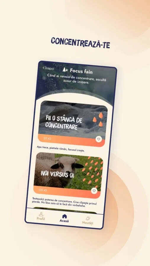 Cu Fainoșag App ai la dispoziție exerciții captivante de concentrare alături de oi adorabile. În plus, beneficiezi de lecții prețioase pentru o viață liniștită, din înțelepciunea lui nea Ion.