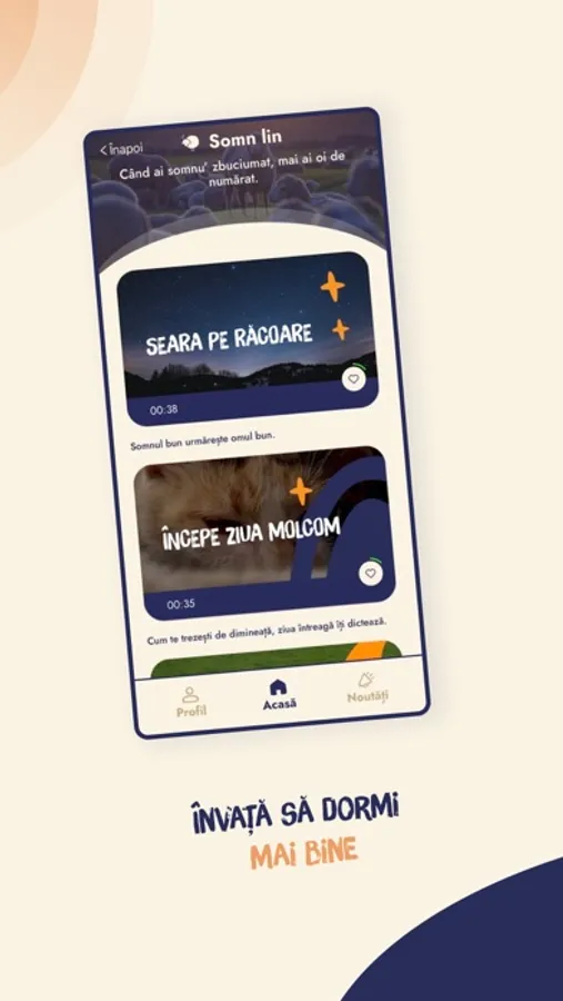 Ai aflat despre videourile din categoria "somn bun"? Experimentează numărătoarea oilor alături de nea Ion sau ascultă sunetele de "whitenoise" din Ardeal: torsul pisicii sau sunetul ploii și a vântului în frunziș, pentru a adormi mai repede și a avea un somn odihnitor.