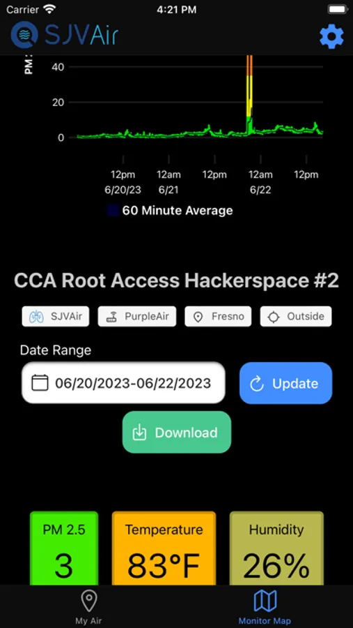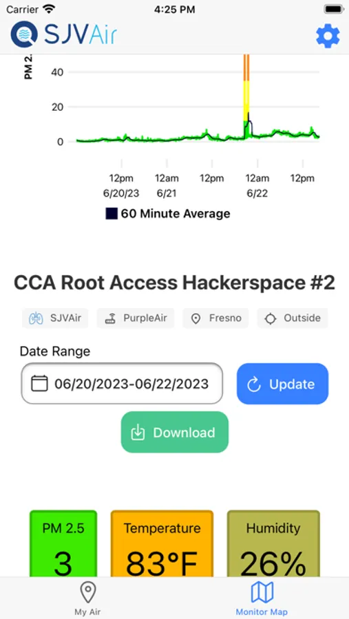 Utilize the full SJVAir monitor network, as well as viewing AirNow and other PurpleAir monitors that have been deployed in the San Joaquin Valley. View past trends and historical data for every monitor on the map, or download the data to start making your own analysis and infographics!